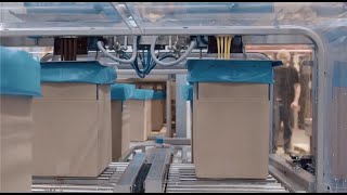 Bagging machine EasyPlast has three great benefits. It is easy to operate, it works 24-hours non-stop (so no production stop) and it is fast: the bagging machine can handle up to 25 boxes, crates or buckets per minute. A quick size change-over is possible and you can add and adjust recipes for each box size. The very compact design is available in a left- or righthanded version.