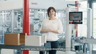 Tray, ürünlerin güvenli bir şekilde taşınmasını ve satış noktasında ilgi çekici bir sunum yapılmasını sağlar. SOMIC 434 Tray Packer, tek parçalı, üstü açık display ambalajlı ürünlerin paketlenmesi için özel olarak geliştirilmiştir. İlk adımda, ürünler müşteri gereksinimlerine göre toplama ve gruplama ünitesinde düzenlenir. Düzenlemeden sonra, ürünler yassı yüzeye yerleştirilir, ardından karton katlanır ve yapıştırılır.